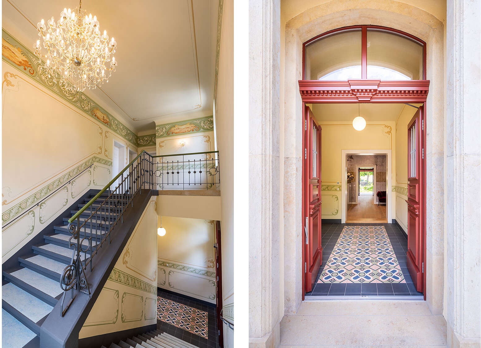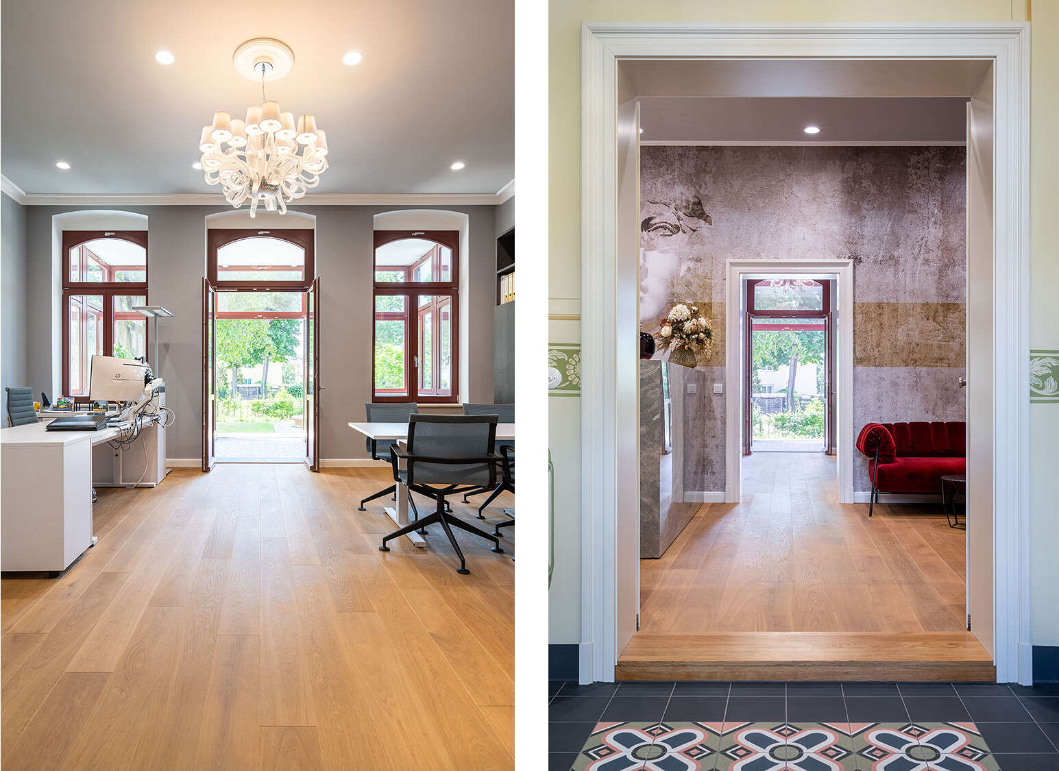 Project by Seidel Architects. Y-O2 wallpaper collection “Torso Figures” designed by Elena Georghiadou compliments this exceptional project. Existing elements were prepared and harmoniously integrated into the overall picture. Since the Dresden old villa is the headquarters of a project developer, the focus was on the interplay between historical elements and modern equipment to present different design options.